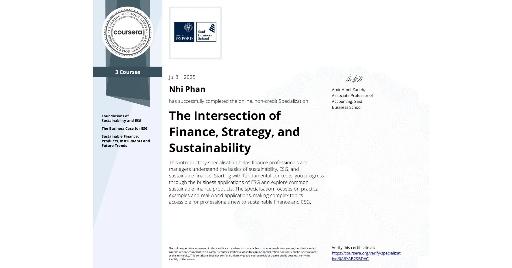 Saïd Business School, University of Oxford | Completed July 22, 2025