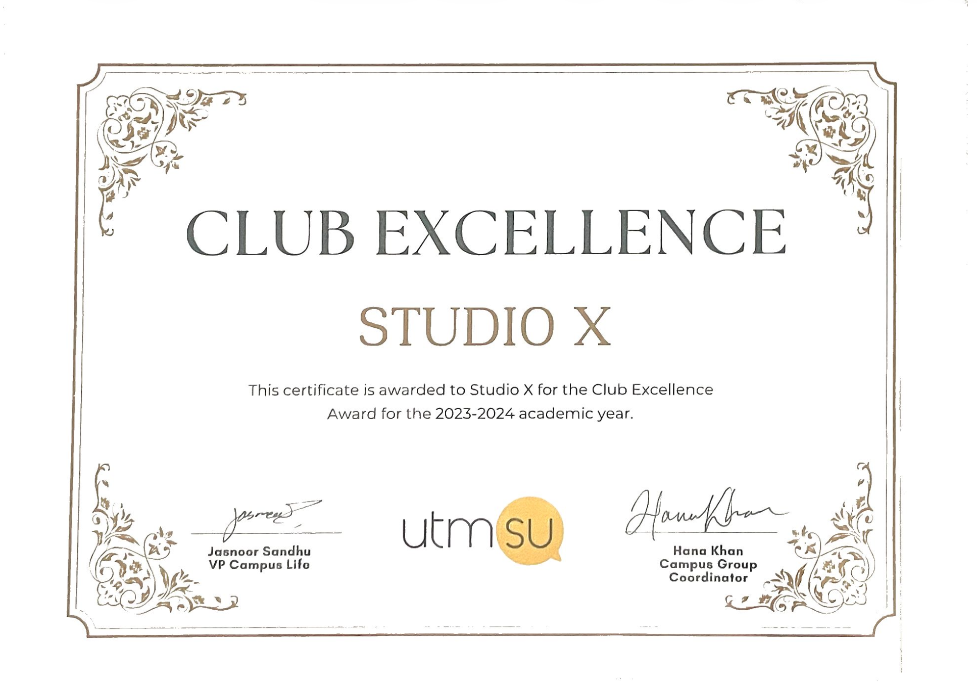 These efforts also led to Studio X receiving the Club Excellence Award from the University of Mississauga Student Union, recognizing the collective’s excellence in programming, collaboration, and campus-wide impact.